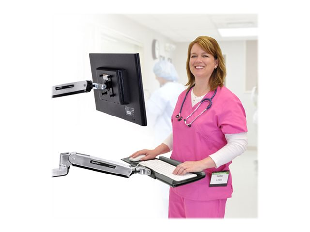 Ergotron LX Wall Mount System with Small CPU Holder - Kit de montage unité système/moniteur/clavier - assis-debout - montable sur mur - jusqu'à 42 pouces - noir, aluminium poli