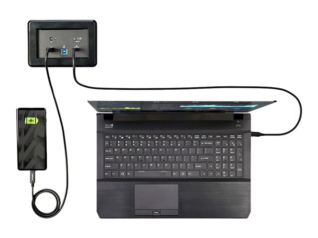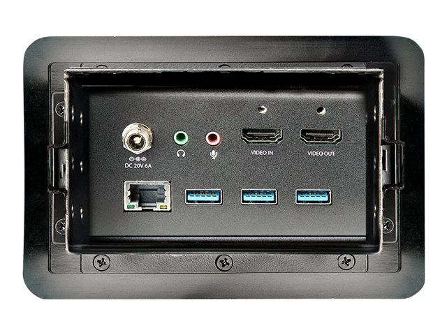 Ajoutez des capacités de station d'accueil et de vidéoconférence à une salle de conférence, une salle de classe ou un espace de réunion. Ce pack de boîtier de connexion pour table de conférence vous permet : • D'accéder à l'affichage et aux périphériques de collaboration de votre salle avec une seule connexion • De charger vos appareils à l'aide du port de charge USB-A • De brancher un ordinateur portable USB-C pris en charge grâce à l'alimentation USB Power Delivery.
