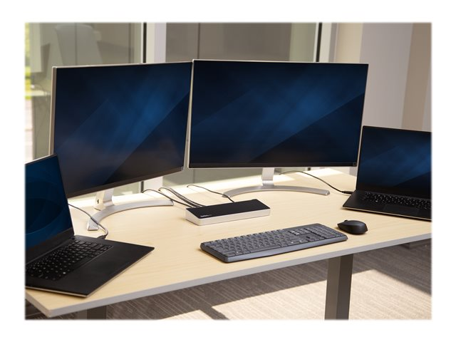 La station accueil USB vous offre la possibilité de connecter un seul écran 4K au lieu de deux écrans. Configurez votre poste de travail avec deux écrans (1 DisplayPort, 1 HDMI) ou pour des résolutions supérieures, connectez un seul écran HDMI ou 4K DisplayPort.