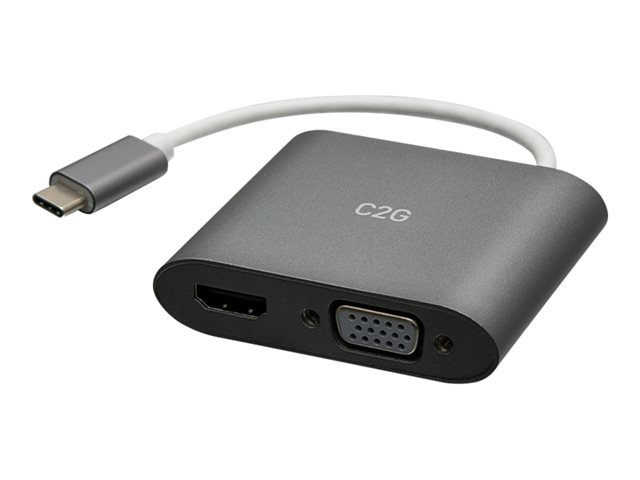 C2G USB C to HDMI & VGA Dual Monitor Adapter - 4K 30Hz - White - Adaptateur vidéo - 24 pin USB-C mâle reversible pour 15 pin D-Sub (DB-15), HDMI femelle - blanc - support 4K