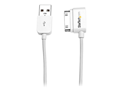 StarTech.com Câble connecteur Apple Dock 30 broches à angle gauche vers USB 2 m - Cordon de charge / sync pour iPad iPhone iPod - Blanc - Câble de chargement / de données - USB (M) pour Apple Dock (M) - 2 m - blindé - blanc - connecteur incliné - pour Apple iPad/iPhone/iPod (Apple Dock)
