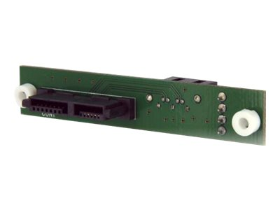Cet adaptateur Slimline SATA vers SATA rentable vous permet de connecter un disque optique Slimline SATA à une connexion de carte mère SATA standard. L'adaptateur est doté d'un connecteur Slimline SATA d'un côté et d'un connecteur de données SATA standard de l'autre. L'alimentation se fait grâce à un connecteur d'alimentation de disquette (SP4), qui combine données et alimentation dans la connexion de disque optique Slimeline SATA. L'adaptateur dispose d'une conception de montage sur carte de circuit imprimé qui peut être solidement fixée dans un lecteur optique, ce qui élimine les connexions desserrées. L'adaptateur Slimline SATA vers SATA standard bénéficie d'une garantie à vie StarTech.com et d'assistance technique à vie gratuite.