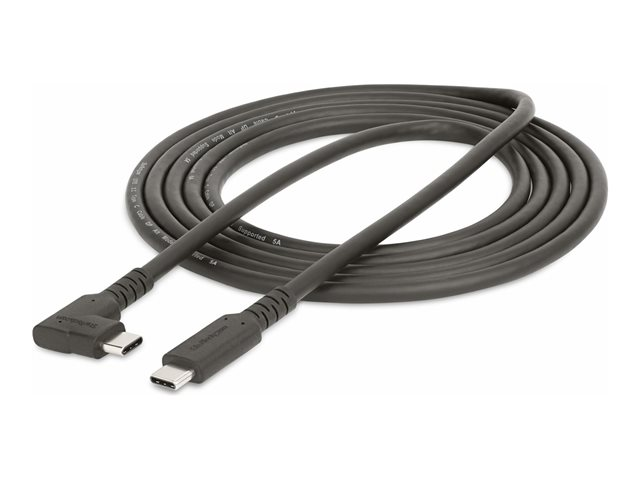 StarTech.com 6ft (2m) Rugged Right Angle USB-C Cable, USB 3.2 Gen 1 (5 Gbps), USB C to C Data Transfer Cable, 4K 60Hz DP Alt Mode, 100W Power Delivery - 90 Degree USB-C Cable (RUSB315CC2MBR) - Câble USB - 24 pin USB-C (M) droit pour 24 pin USB-C (M) angle droit - USB 3.2 Gen 1 - 2 m - support pour 4K60Hz, robuste - noir