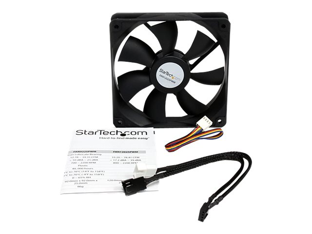 StarTech.com Ventilateur d'Ordinateur 120 mm avec PMW - Connecteur à Modulation d'Impulsion en Durée - 1x Molex Fan Femelle - Ventilateur châssis - 120 mm - noir FAN12025PWM