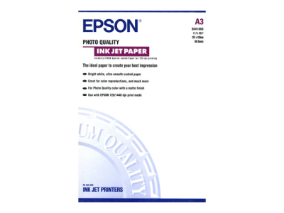 Epson Photo Quality Ink Jet Paper - Mat - enduit - A3 (297 x 420 mm) - 102 g/m² - 100 feuille(s) papier - pour SureColor SC-P700, P7500, P900, P9500, T2100, T3100, T3405, T5100, T5400, T5405