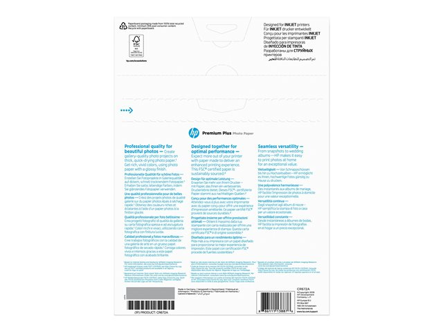 HP Premium Plus Photo Paper - Brillant - A4 (210 x 297 mm) - 300 g/m² - 20 feuille(s) papier photo - pour Officejet 52XX, 6000, 6000 E609, 68XX, 7000 E809, 80XX; Photosmart B110, Wireless B110