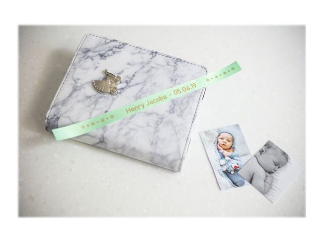 Brother TZe-RM34 - Satin - or sur vert menthe - Rouleau (1,2 cm x 4 m) 1 cassette(s) bande de ruban - pour P-Touch Embellish TZERM34