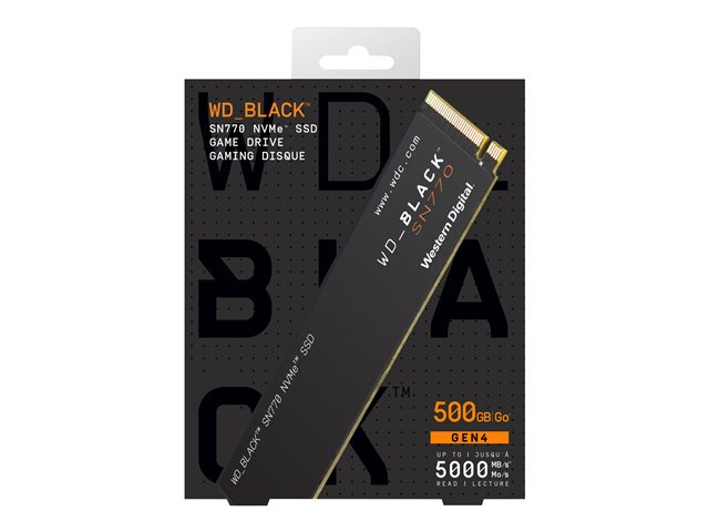 Plongez dans l'action dès maintenant avec le disque WD BLACK SN770 NVMe SSD. Ce disque conçu spécialement pour le gaming est doté d'une interface PCIe Gen 4 offrant des vitesses élevées.