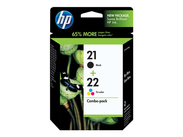 HP 21/22 - Pack de 2 - noir, couleur (cyan, magenta, jaune) - original - cartouche d'encre - pour Deskjet D1530, D1560, F2185, F2187, F2224, F2275, F2280, F2290, F4175, F4188, F4190, F4194