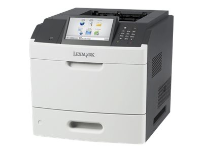 L'imprimante laser Lexmark MS812de est équipée d'une interface réseau, d'un écran tactile en couleur de 7 po, d'une fonction d'impression recto-verso interne, d'un processeur bicœur de 800 MHz, d'un disque dur de plus de 80 Go, d'un module d'alimentation standard de 650 feuilles et d'un port USB frontal d'impression directe.