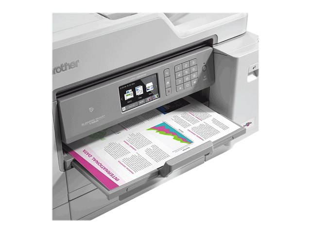 Le MFC-J5945DW répond à tous les besoins des entreprises grâce à des performances fiables et de haute qualité. Imprimez jusqu'au format A3, et facilitez vos numérisations et copies avec le chargeur automatique de documents A4 d'une capacité de 50 feuilles, vous permettant d'être plus productif dans vos activités quotidiennes. Avec son écran couleur tactile de 9,3 cm, ce multifonction jet d'encre couleur 4-en-1 vous permet d'accéder facilement aux fonctionnalités dont vous avez besoin pour votre entreprise.