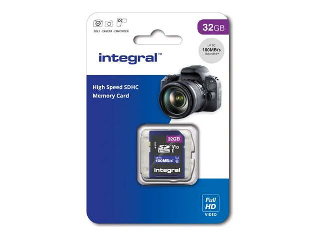 Integral - Carte mémoire flash - 32 Go - Video Class V10 / UHS-I U1 / Class10 - SDHC UHS-I INSDH32G-100V10