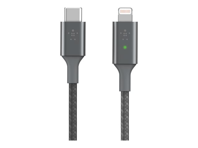 Belkin BOOST CHARGE Smart - Câble Lightning - 24 pin USB-C mâle pour Lightning mâle - 1.2 m - gris - Prise en charge de Power Delivery