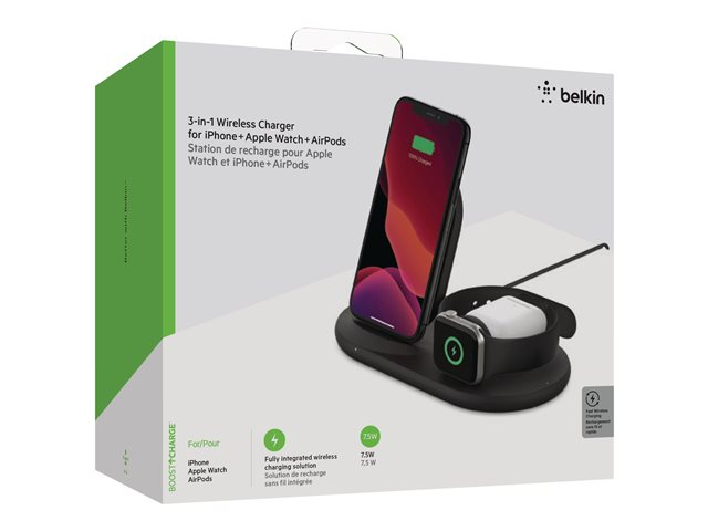 Belkin BOOST CHARGE - Support de chargement sans fil - 7.5 Watt - noir - pour Apple AirPods; AirPods Pro; iPhone 11, 12, 7, 8, SE, X, XR, XS, XS Max; Watch