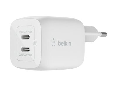 Belkin BoostCharge Pro GaN - Adaptateur secteur - Technologie PPS et GaN - 45 Watt - Fast Charge, PD 3.0 - 2 connecteurs de sortie (2 x USB-C) - blanc