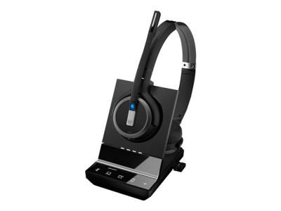Micro-casque binaural sans fil DECT avec triple connectivité softphone/PC, téléphone fixe et mobile. Son très large bande, système de réduction du bruit et sortie stéréo pour une qualité audio de niveau professionnel.