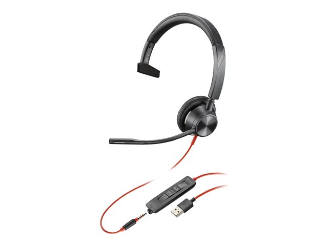 Poly Blackwire 3315 - Blackwire 3300 series - micro-casque - sur-oreille - filaire - Suppresseur de bruit actif - jack 3,5mm, USB-A - noir