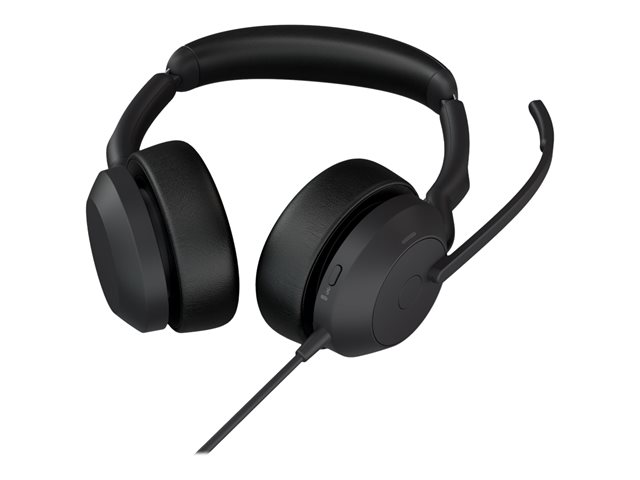 Jabra Evolve2 50 UC Stereo - Micro-casque - sur-oreille - Bluetooth - filaire - Suppresseur de bruit actif - USB-A - noir - certifié Zoom, Cisco Webex Certified, Optimisé pour la CU, Optimisé pour Google Meet, Optimisé pour Microsoft Teams, Certifié Alcatel-Lucent, Certifié Avaya, Certifié Unify, Certifié Amazon Chime