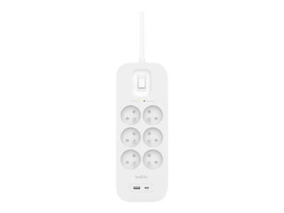 Belkin Connect - Protection contre les surtensions - avec ports USB-C et USB-A - AC - connecteurs de sortie : 6 - 2 m cordon SRB002CA2M