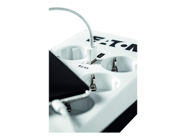 Eaton Protection Box 6 USB Tel@ Din - Protection contre les surtensions - CA 220-250 V - 2500 Watt - connecteurs de sortie : 6 - blanc PB6TUD
