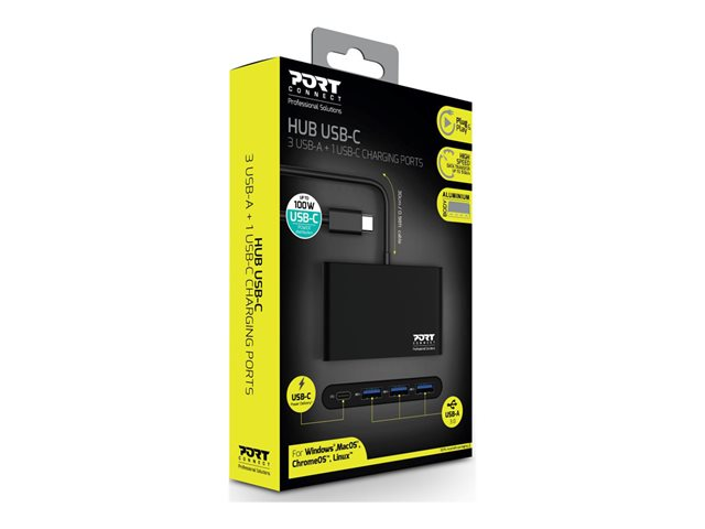 PORT Connect - Concentrateur (hub) - 3 x SuperSpeed USB 3.0 + 1 x USB-C - de bureau