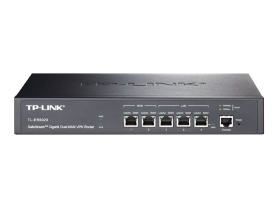 Le TL-ER6020 SafeStream Routeur VPN Double WAN Gigabit de TP-LINK offre des capacités exceptionnelles de traitement de données et de fonctions multiples: VPN IPsec/PPTP/L2TP, répartition de charge, contrôles d'accès, blocage IM/P2P, défense contre les dénis de service DoS, contrôle de la bande passante, limite de session et serveur PPPoE qui répondent aux besoins des PME, hôtels et communautés regroupant un grand nombre d'utilisateurs et nécessitant un réseau de haute sécurité efficace et facile à gérer.