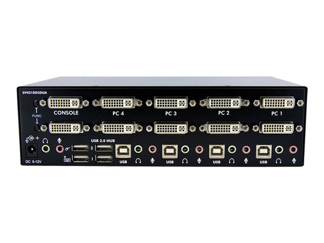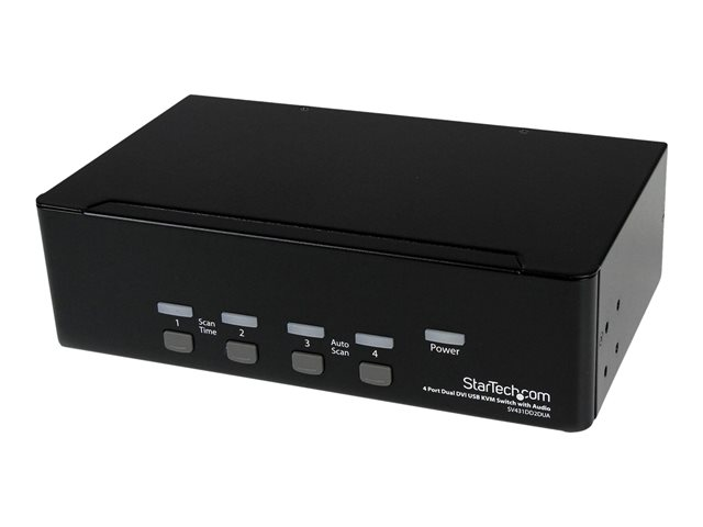 StarTech.com Switch KVM USB 2 Ecrans DVI pour 4 Ordinateurs avec Audio - Commutateur KVM - Commutateur écran-clavier-souris/audio/USB - 4 x KVM / audio / USB - 1 utilisateur local - de bureau - pour P/N: IM12D1500P, SV431RACK, SVA12M2NEUA, SVA12M5NA, USBDVI4N1A10, USBDVI4N1A6