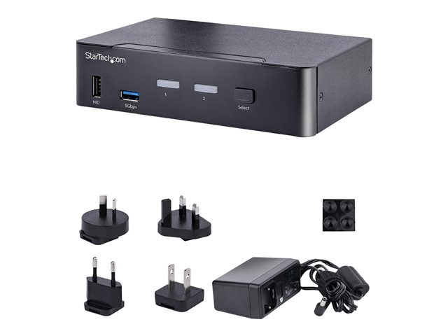 StarTech.com USB C KVM Switch, 2 Port DisplayPort KVM w/ 4K 60Hz UHD HDR Video, 3.5mm Audio, USB Type C KVM Switch, 4x USB HID and 2x USB A 3.2 Gen 1 5Gbps Hub, Thunderbolt 3/4 Compatible - Hot Key Switching (SV231DPUCA) - Commutateur écran-clavier-souris/audio/USB - 2 x KVM / audio / USB - de bureau - Conformité TAA