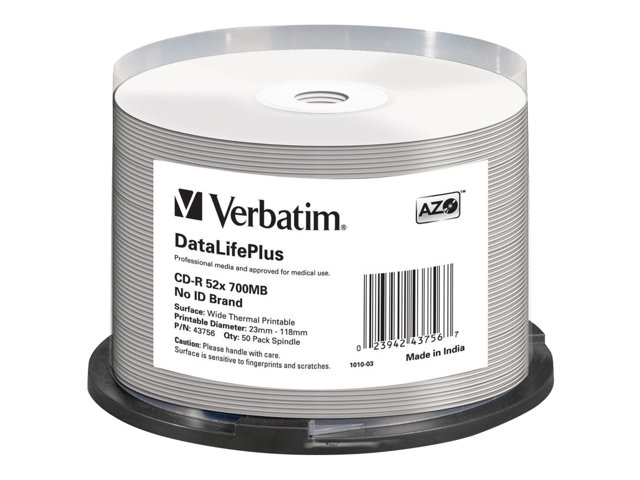 Verbatim DataLifePlus Professional - 50 x CD-R - 700 Mo 52x - surface imprimable thermique large - spindle 43756