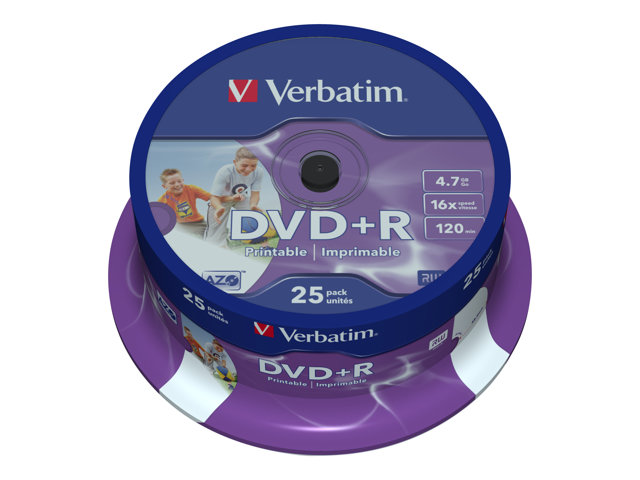 Verbatim - 25 x DVD+R - 4.7 Go 16x - surface imprimable photo large - spindle 43539