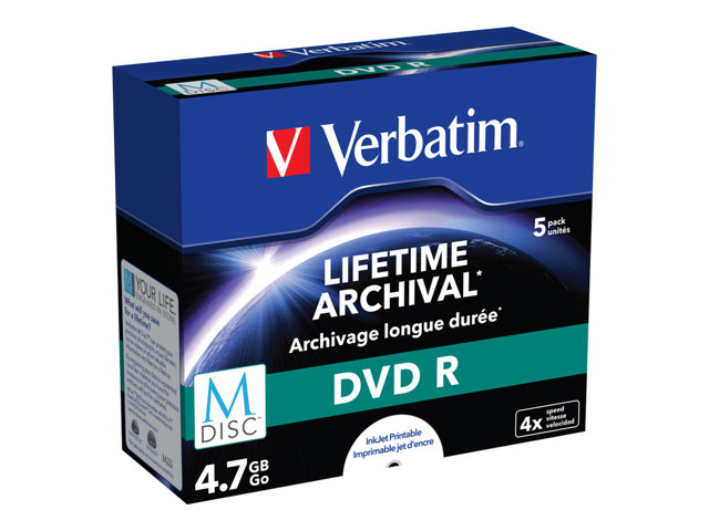Verbatim M-Disc - 5 x DVD-R - 4.7 Go 4x - surface imprimable par jet d'encre - boîtier CD